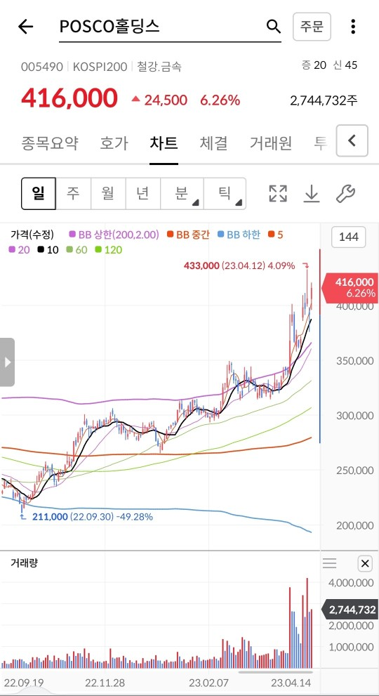 7) 차트 보기 포스코홀딩스 재고